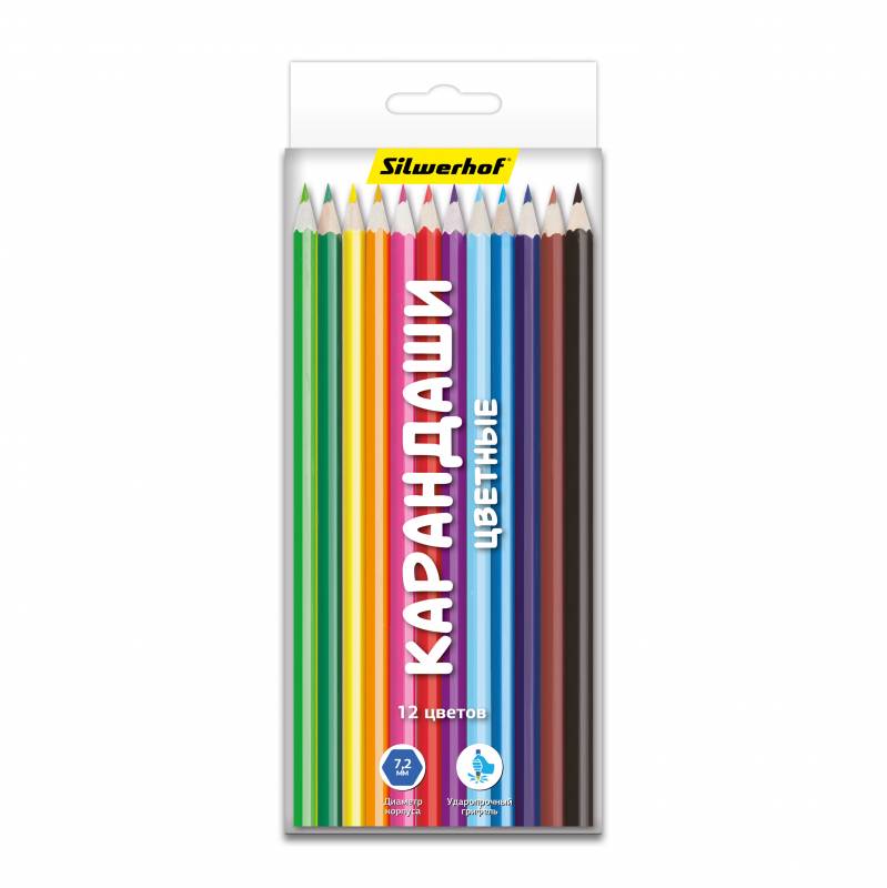 Карандаши цветные Silwerhof 134206-12 Народная коллекция шестигранные d=2.65мм 12цв. коробка/европод.