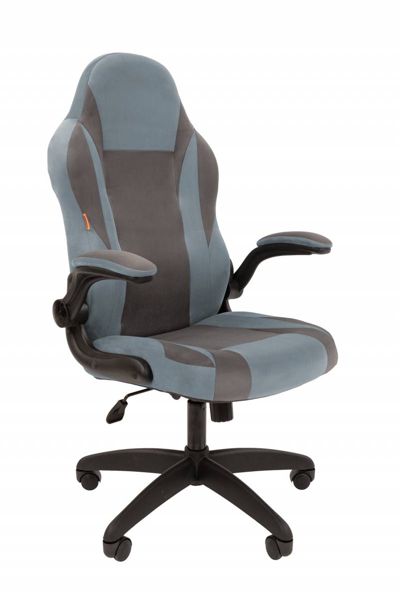 • Кресло Chairman game 55 Россия голубой/серый велюр Т71/Т55 пластик черный